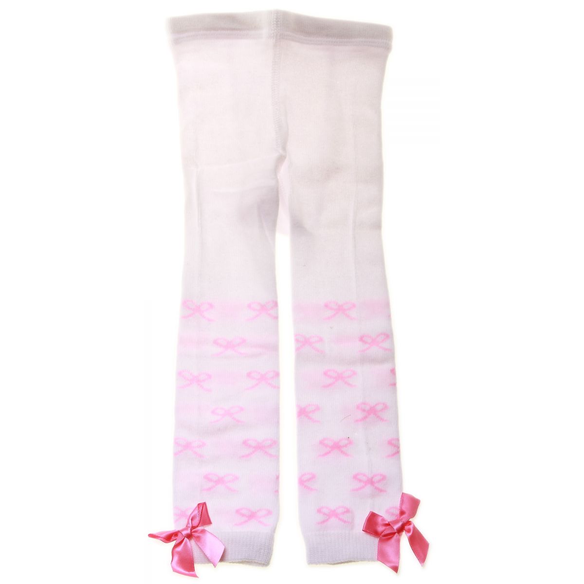 6120 Baby Girls Foot Less Tights In White Pink Bows
