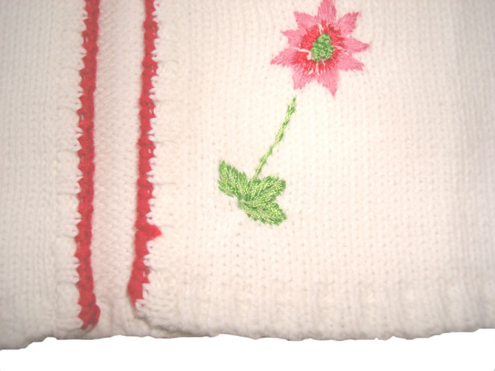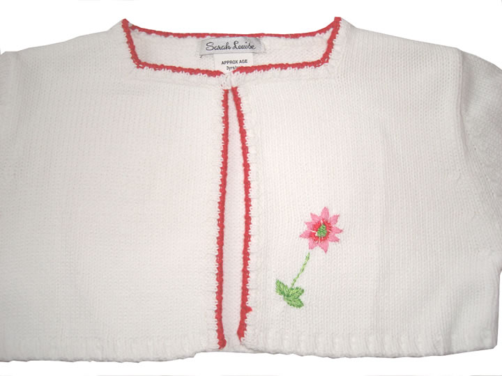 White with red flowers girl bolero from Sarah Louise. 100% acrylic.