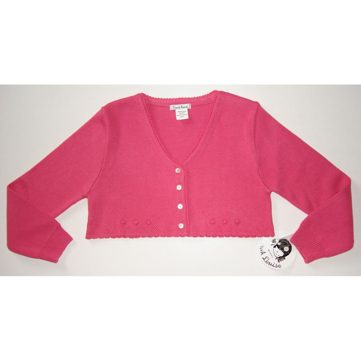 Sarah Louise girl bolero in deep pink. Flowers embroidery and patterns on fron and rear. 50% acrylic 50% cotton.