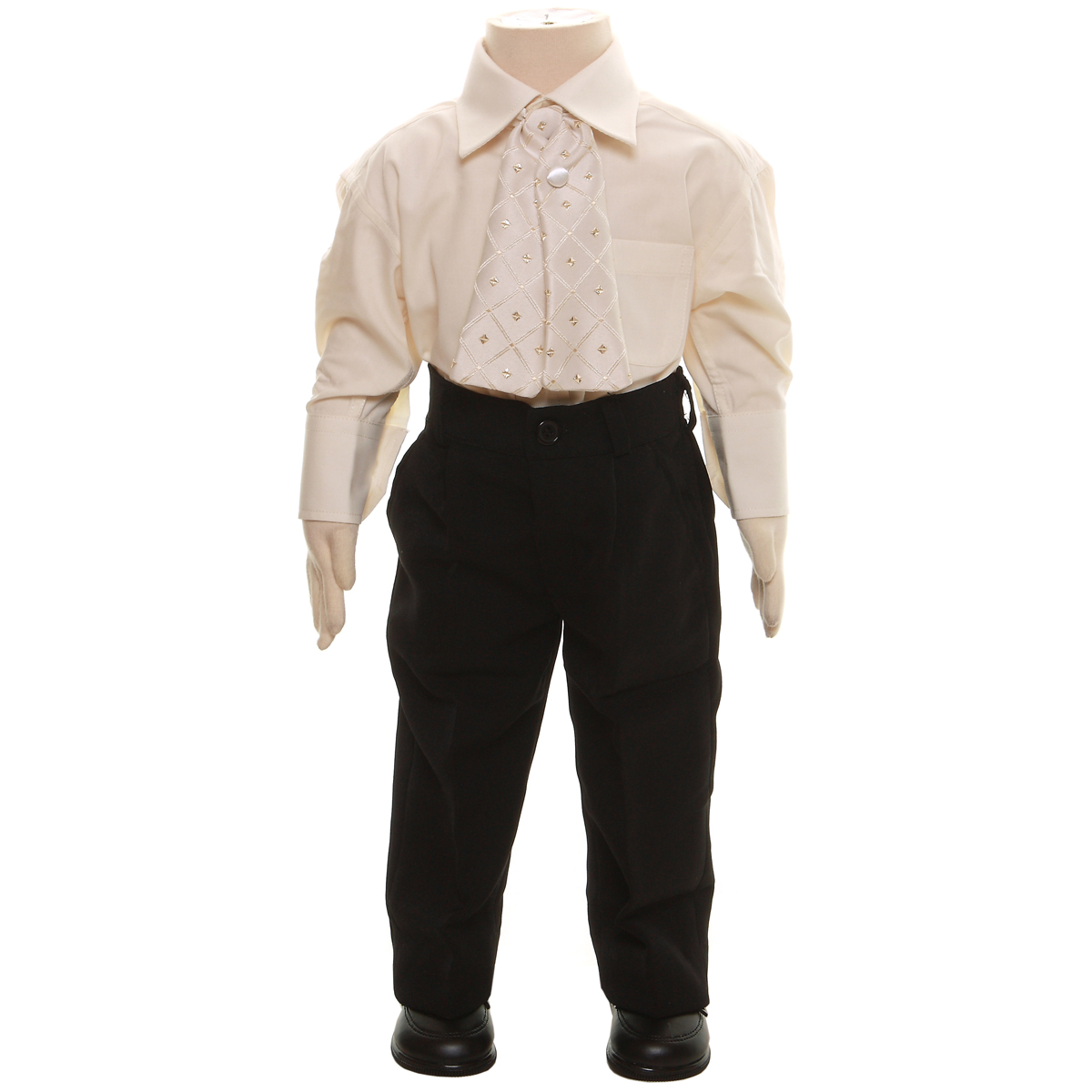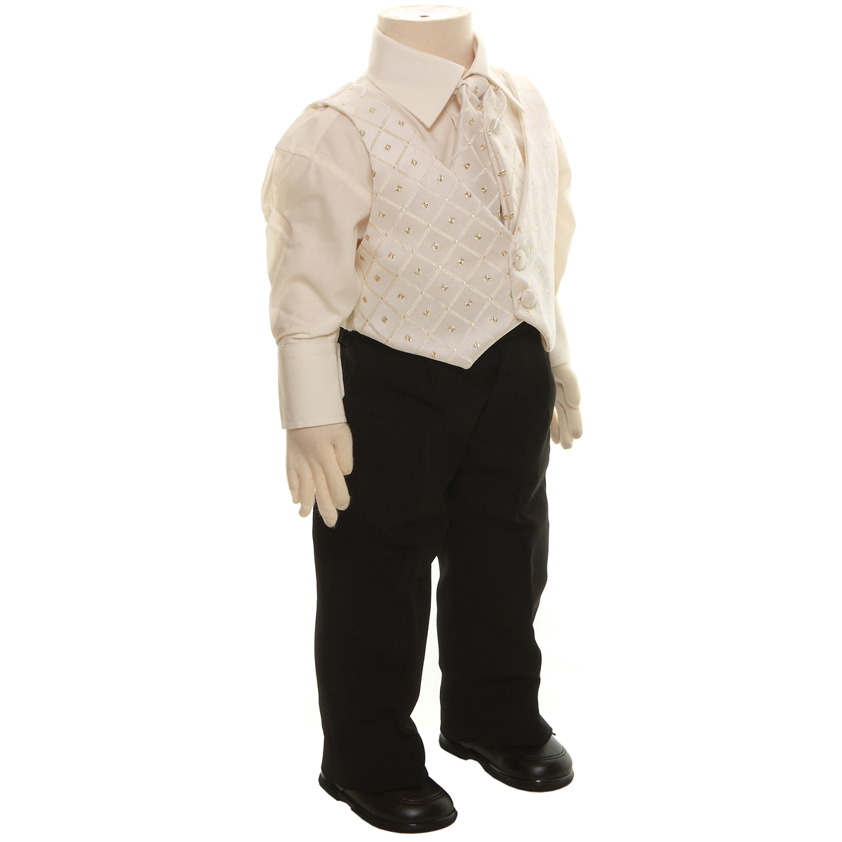Baby Boys Ivory Waistcoat Set With Black Trousers