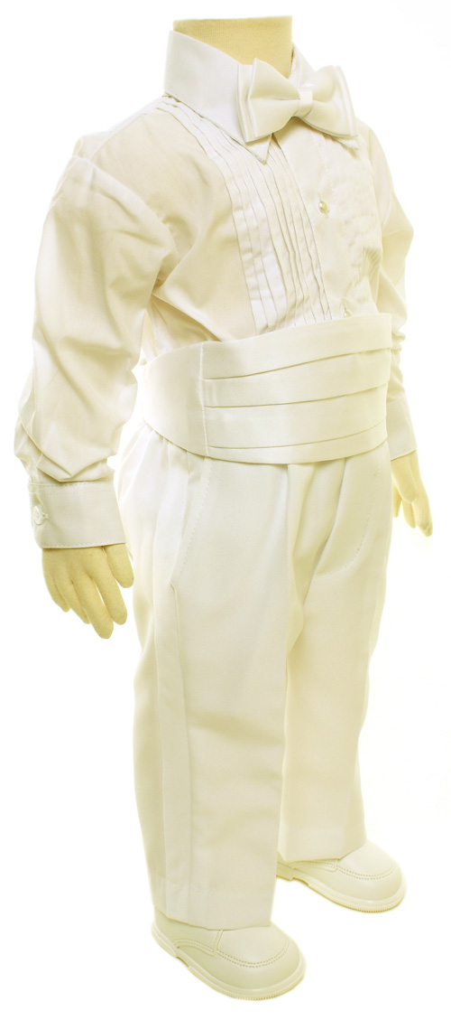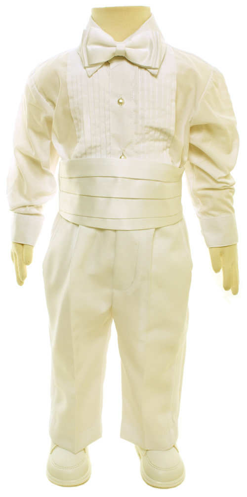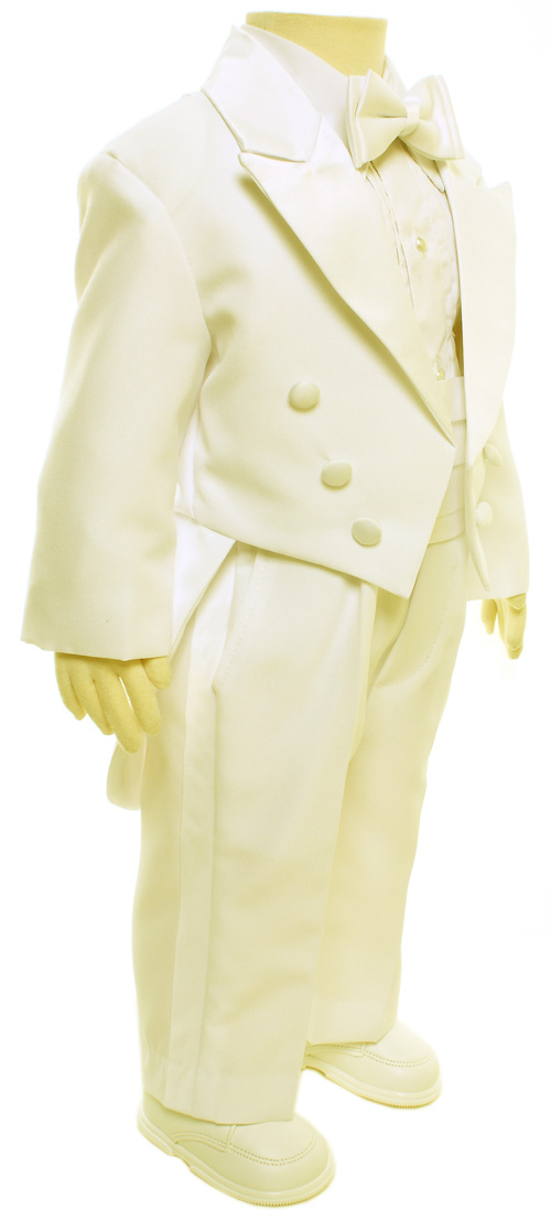 Ivory tail suit for baby boys. 5 piece suit comprising: