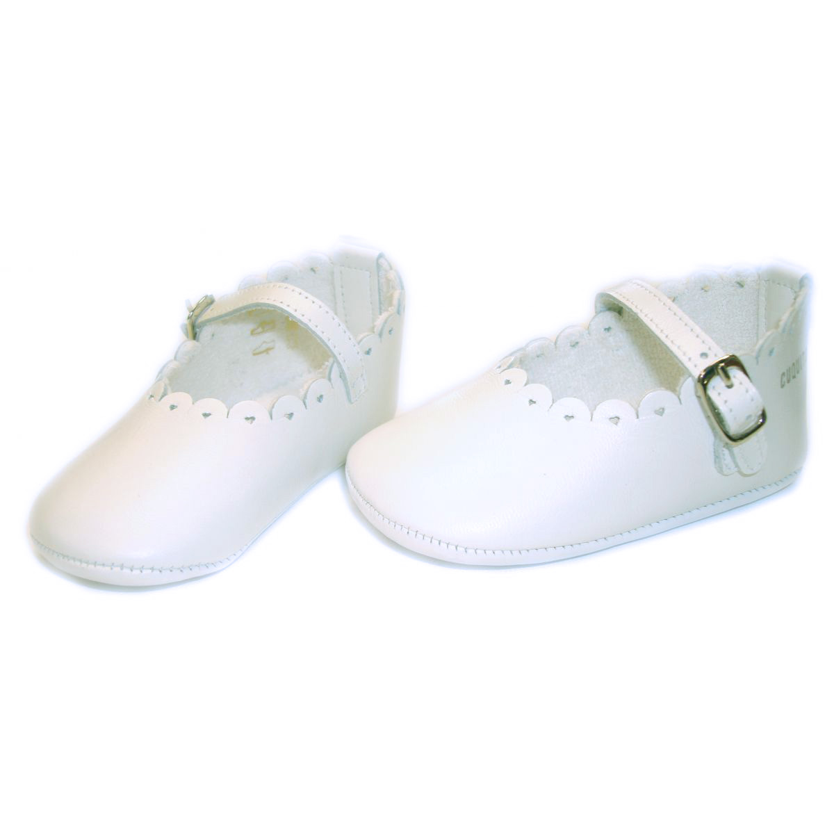 Baby girls matt leather shoes in white. 100% soft leather outter. Matching colour leather sole. Please see sizing guide on help in choosing the right sizes.