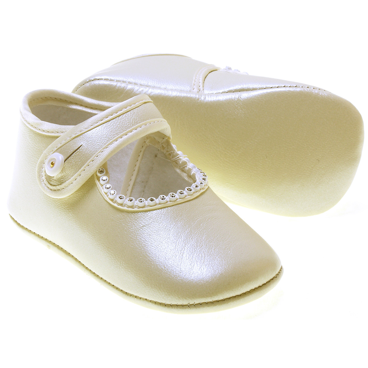 Soft ivory leather special occasions shoe with sparky diamante trim from CuQuito, renounced for selecting comfortable designs and materials which are light and nature to care for your baby's feet.