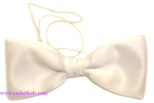 Boy bow tie in white for babies and toddlers. Elasticated fastening.