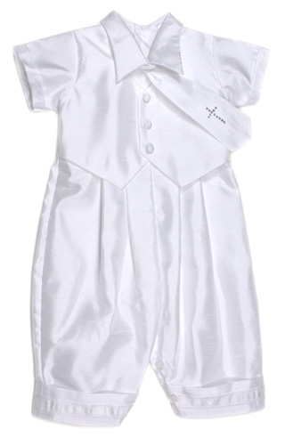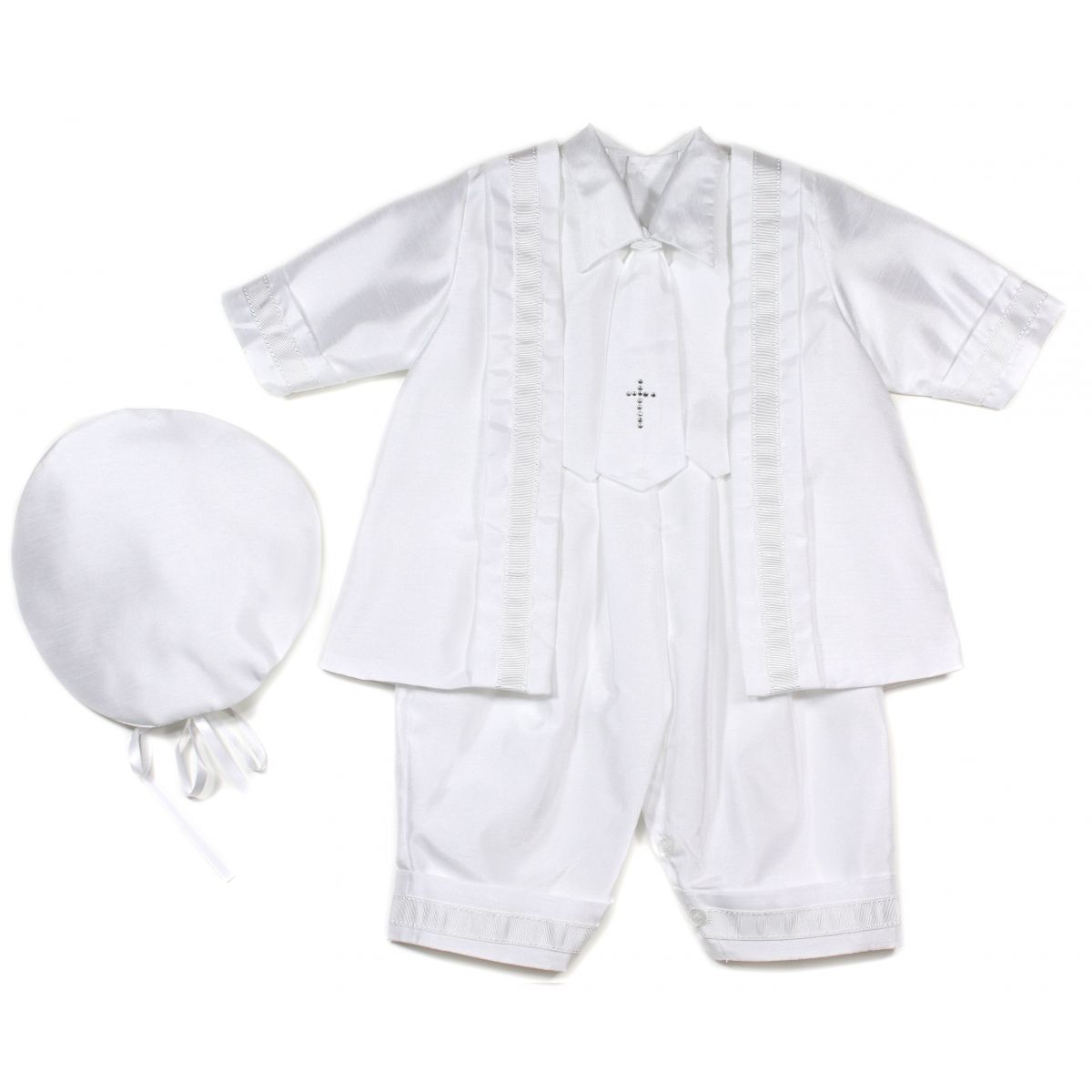 Elevate your little one's special day with this beautifully crafted exquisite three-piece white christening outfit for boys, crafted with meticulous attention to detail: