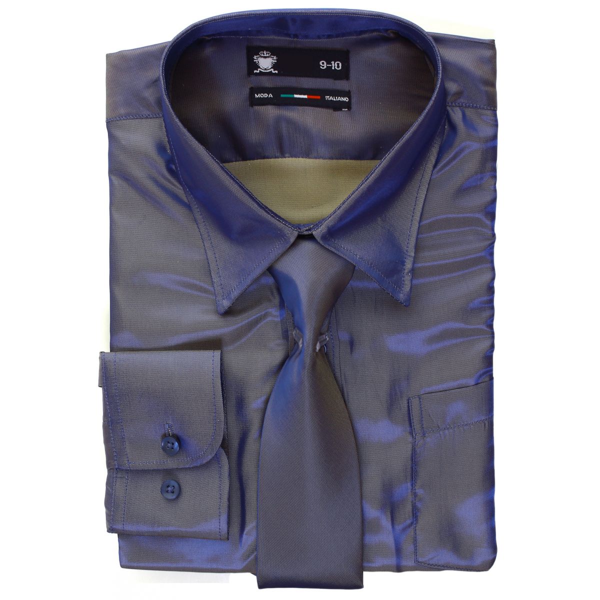 Stand out from the crowd with our very niche boys' party shirt, featuring a captivating azure blue color and a silky sheen fabric.