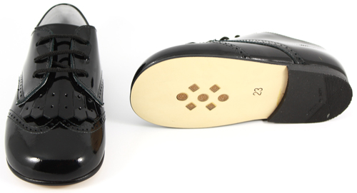 Enhance his footwear collection with the best quality boys black patent shoes, proudly made in Spain by Tinny/TNY Shoes for Cachet Kids. These shoes boast: