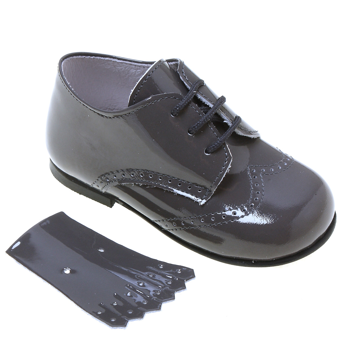 Baby Boys Lace Up Grey Shoes In Patent Leather