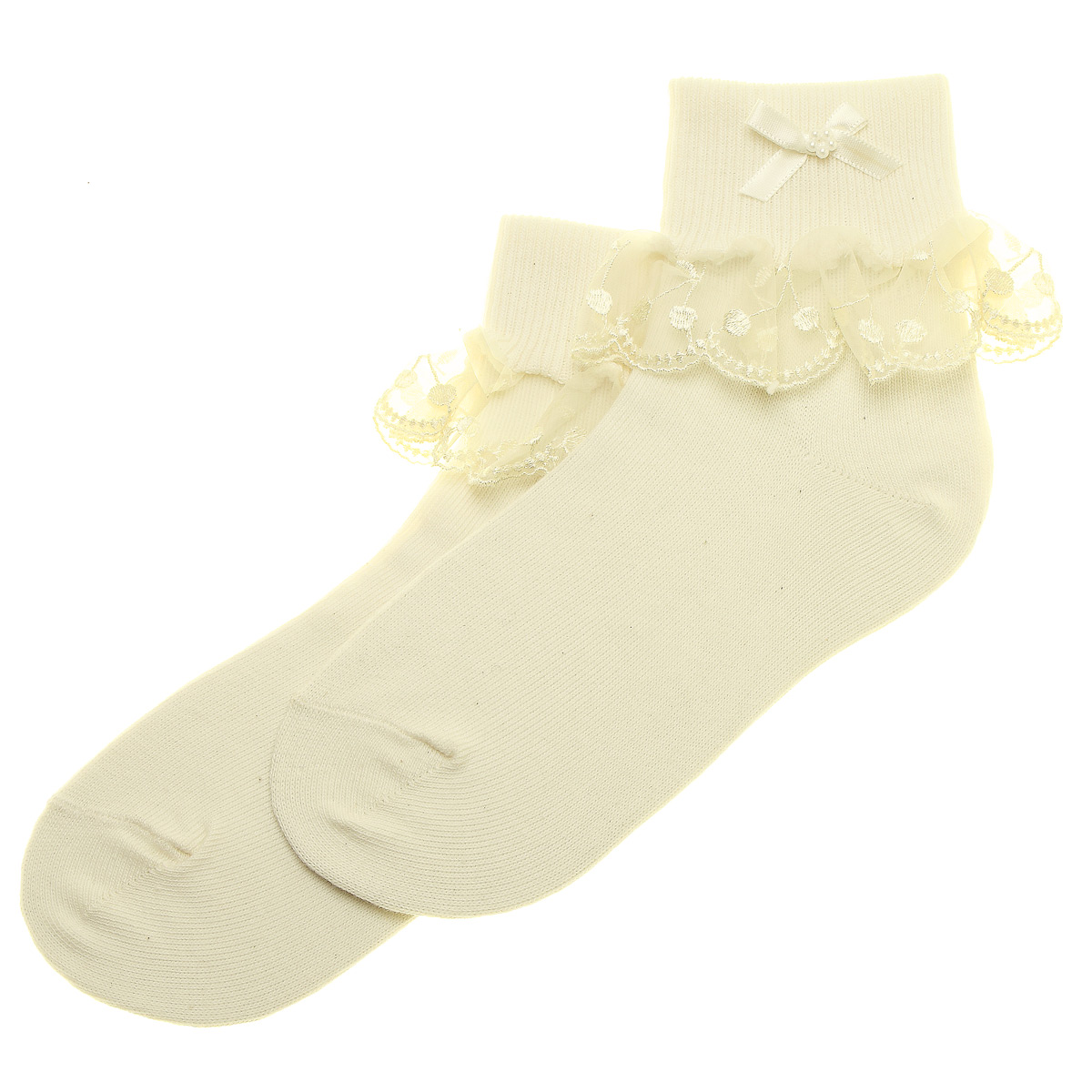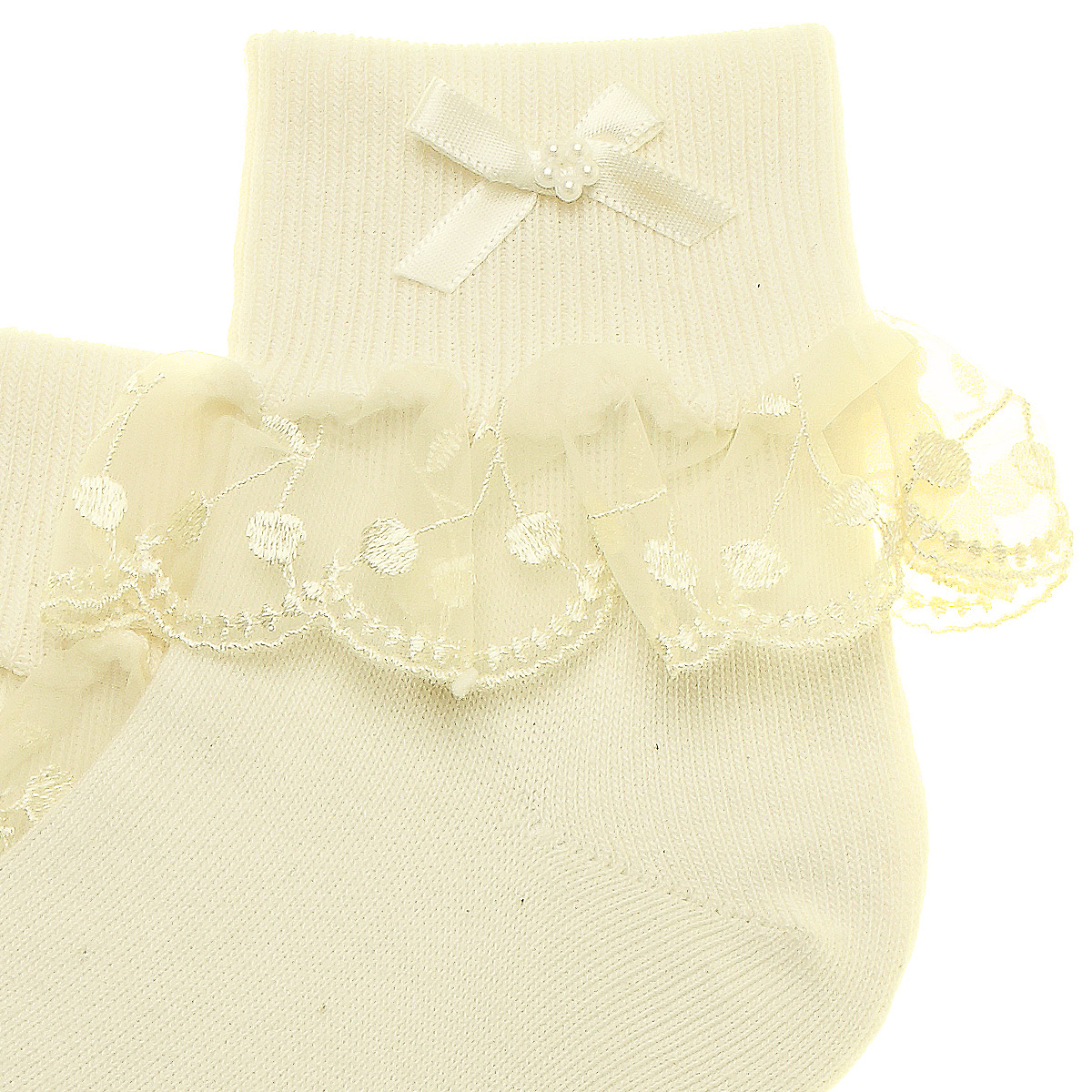 Cherry Lace Girls Ivory Frilly Socks With Bow #1Cherry Lace Girls Ivory Frilly Socks With Bow #2