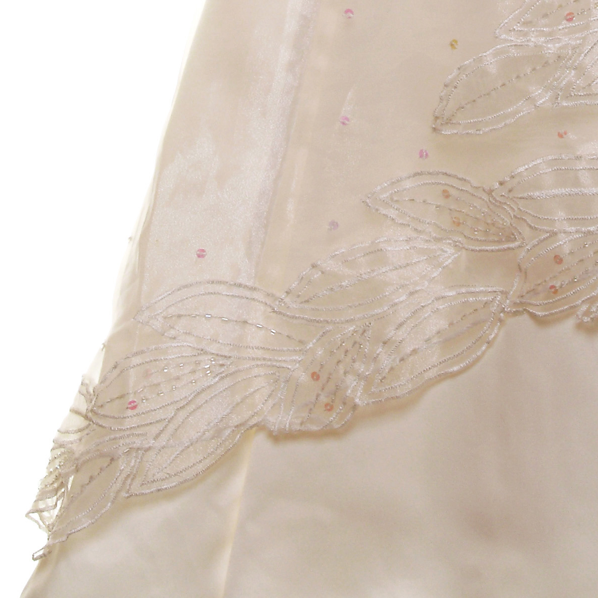 Decorated with ivory embroideries and pink sequins on net throughout the front