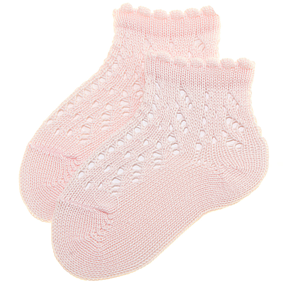 Girls Openwork Pink Short Ankle Socks With Scallop #1Girls Openwork Pink Short Ankle Socks With Scallop #2