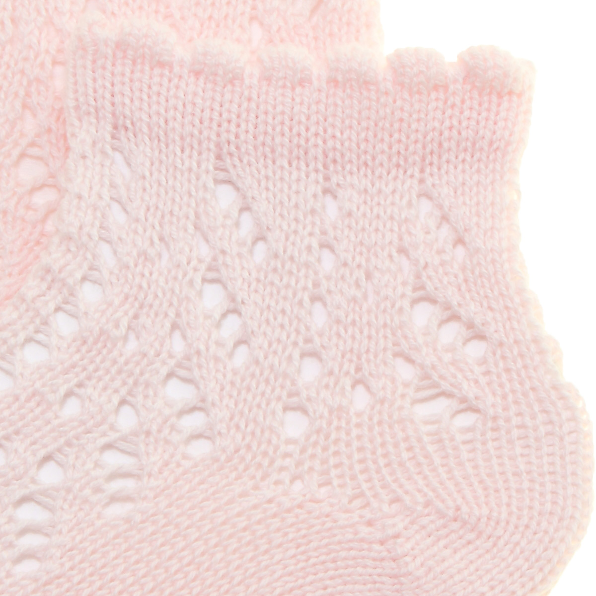 Girls Openwork Pink Short Ankle Socks With Scallop