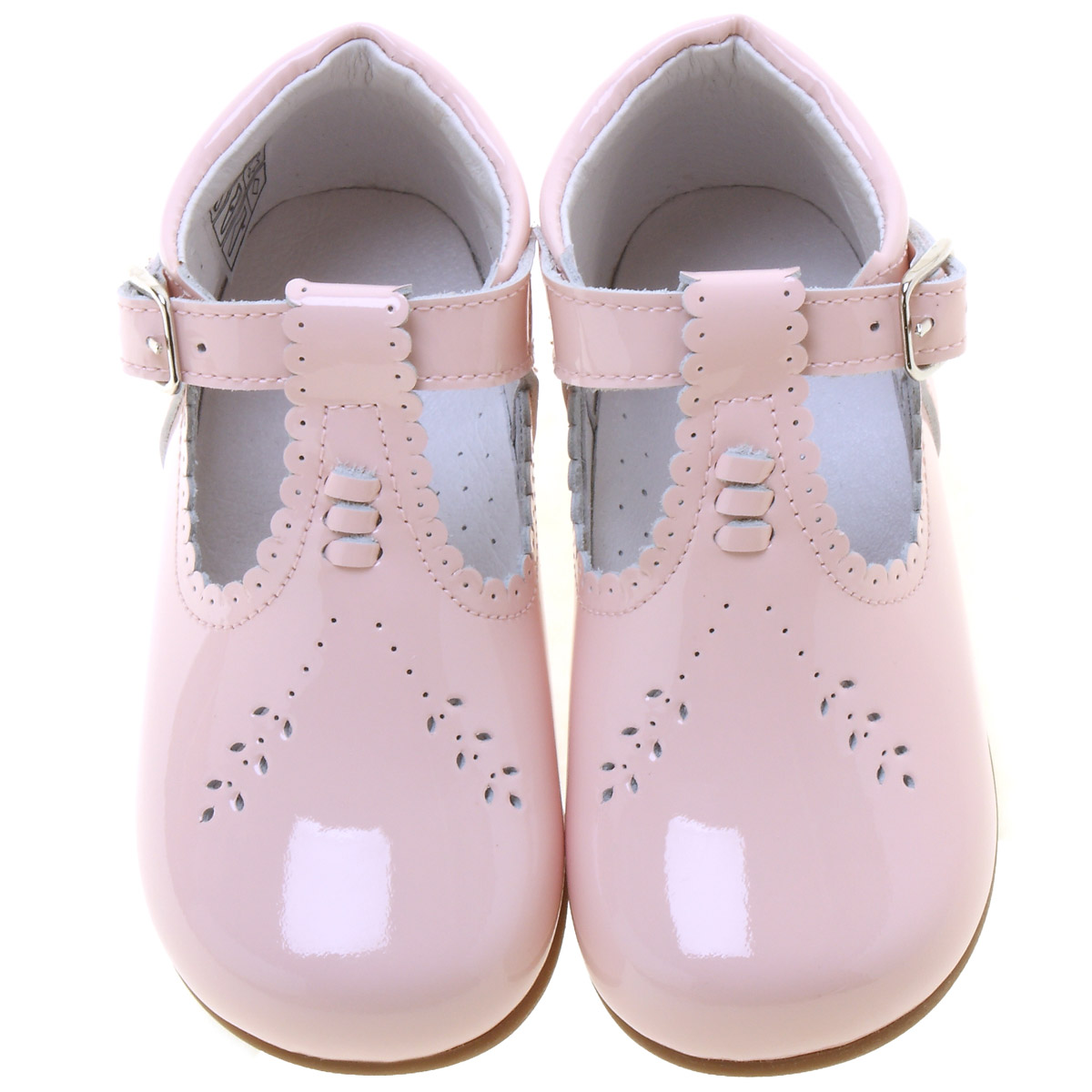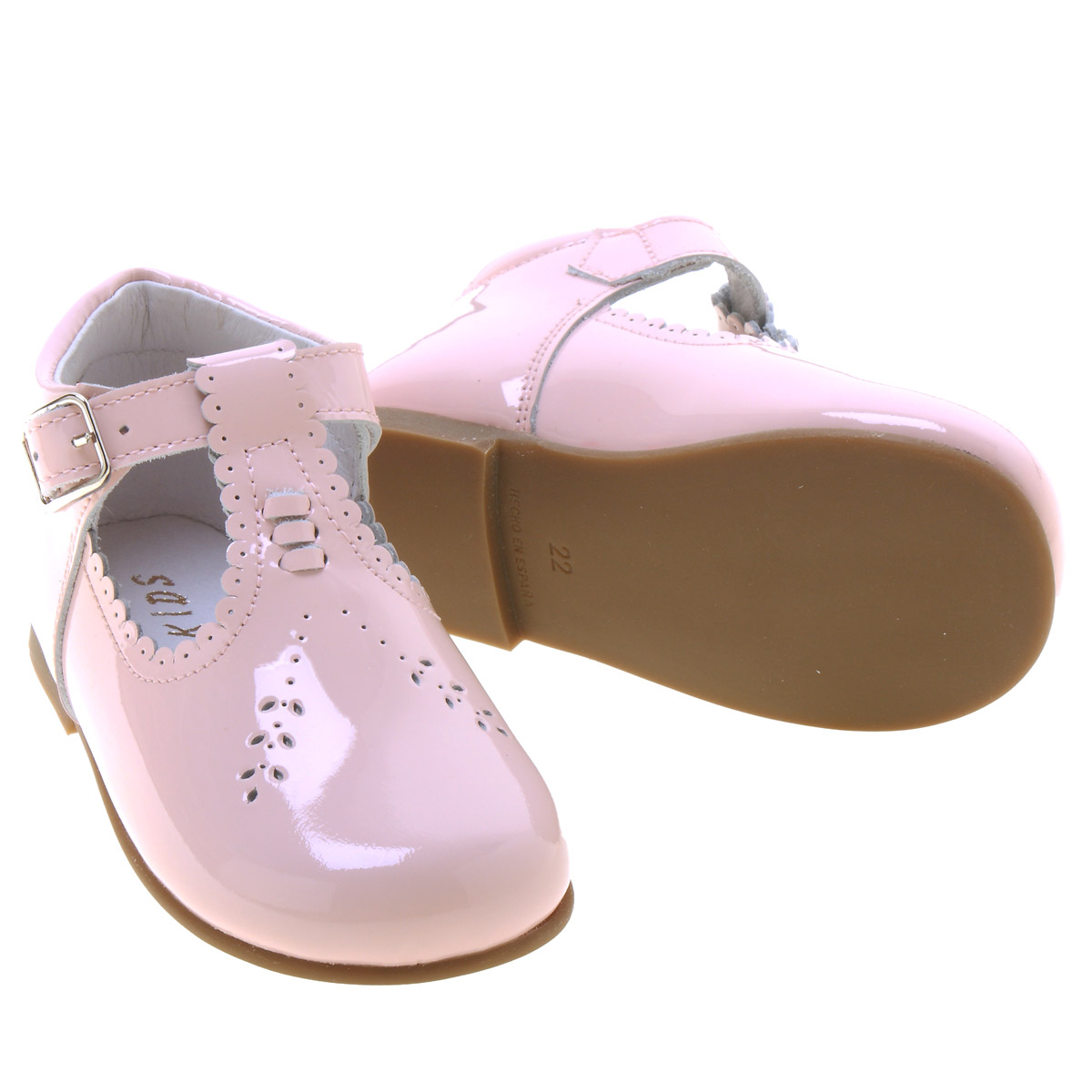 Beautiful Spanish made pink T-bar shoes in pink patent leather: