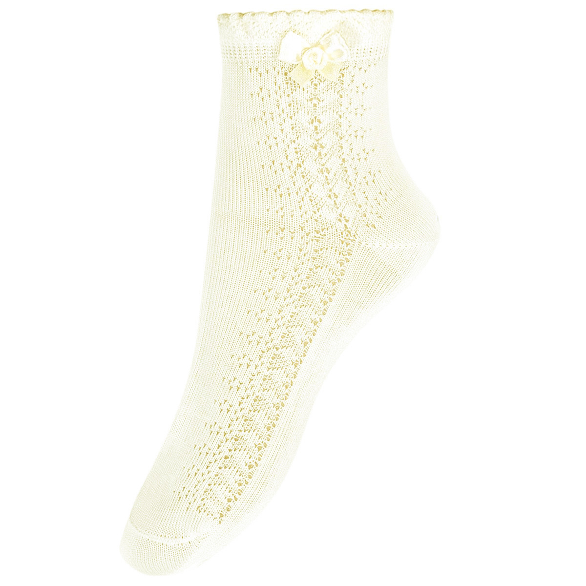 Girls Summer Dress Socks In Ivory Decorated By Bow Scallop Trim