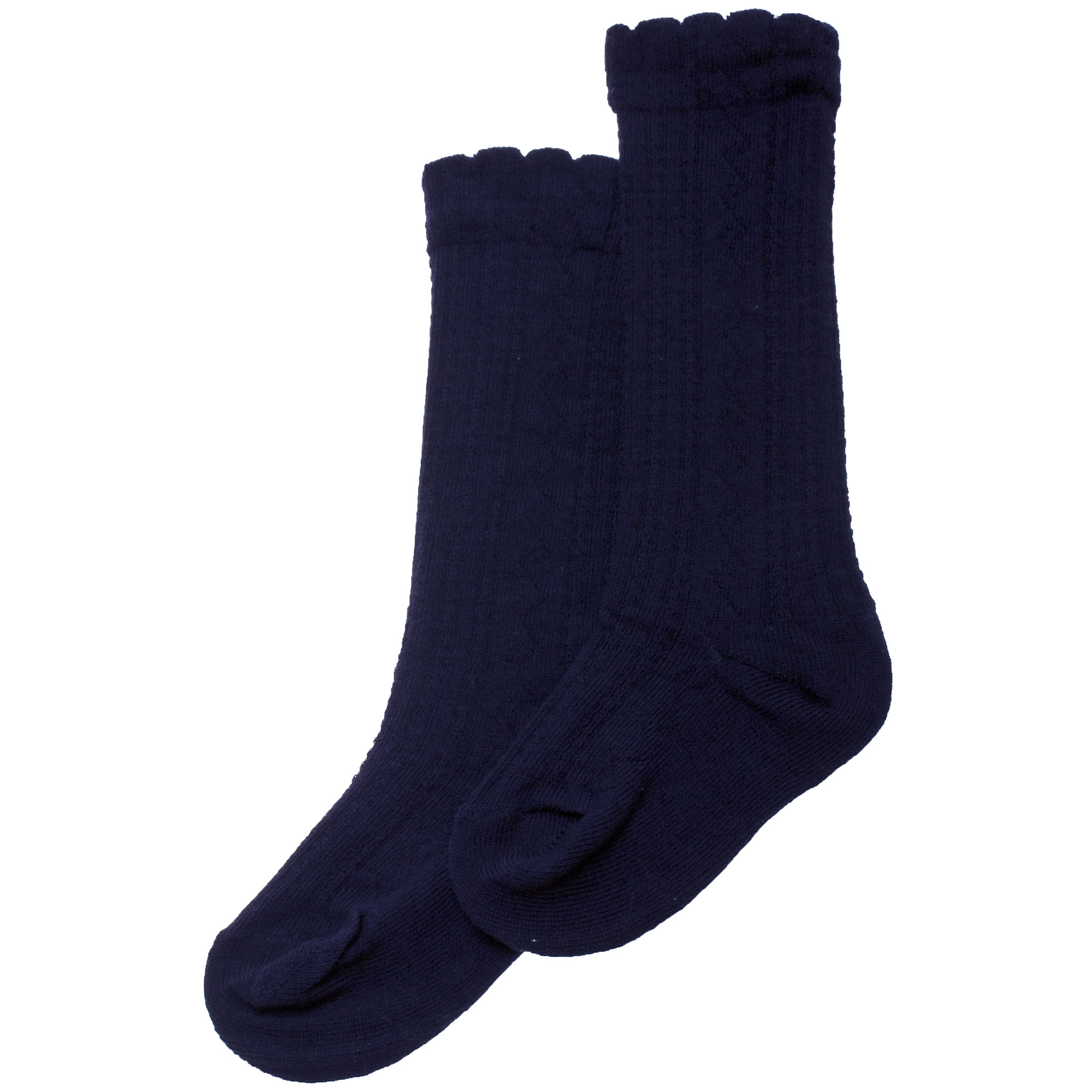Knee High Cotton Rich Navy Socks Scallop Edge
