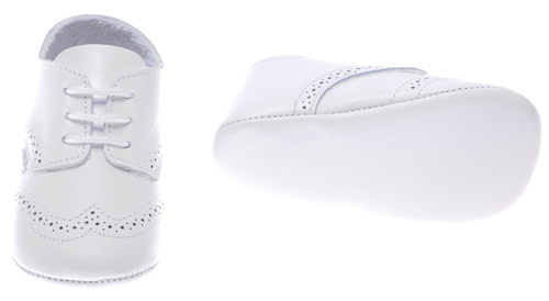 Baby boys white leather shoes with lace up for christening and special occasions: