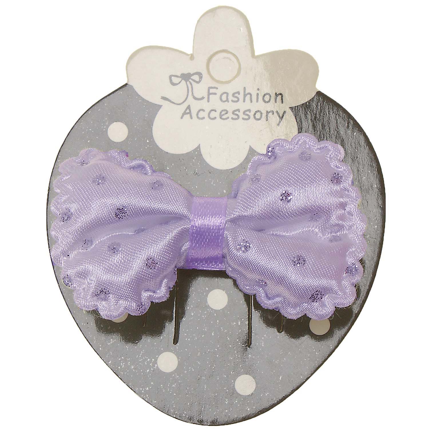 Lilac hair Bow decorated by lilac glitter polka dots. Flat clip. Size 6cm x 3.5cm.