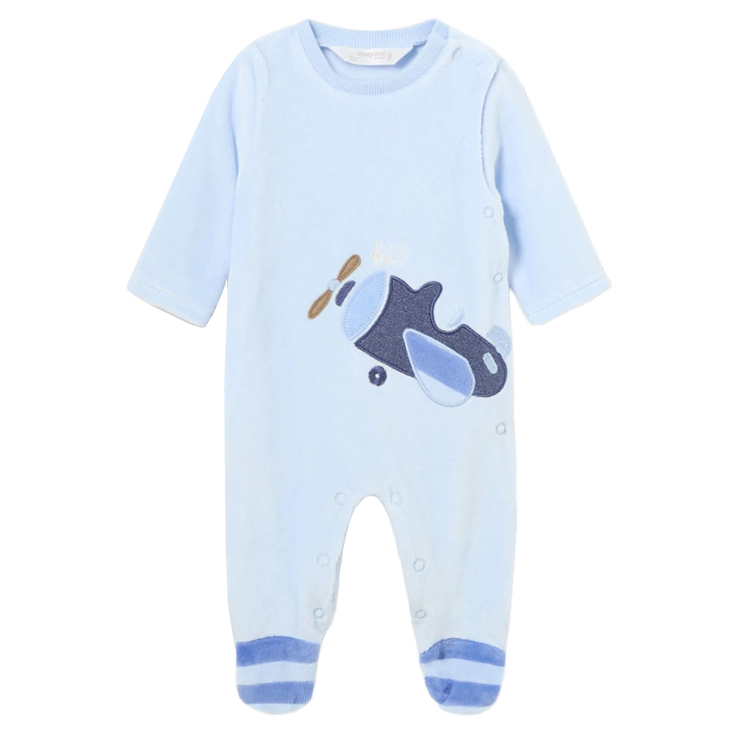 Mayoral Baby Boys Blue Footed Romper With Plane Applique