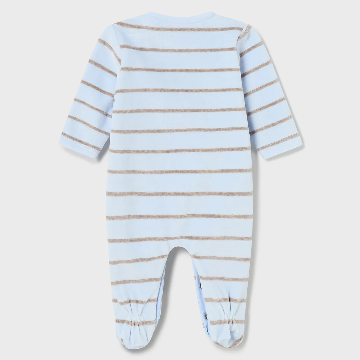 Warm and comfortable Autumn Winter Mayoral baby boys footed romper in blue with brown stripes: