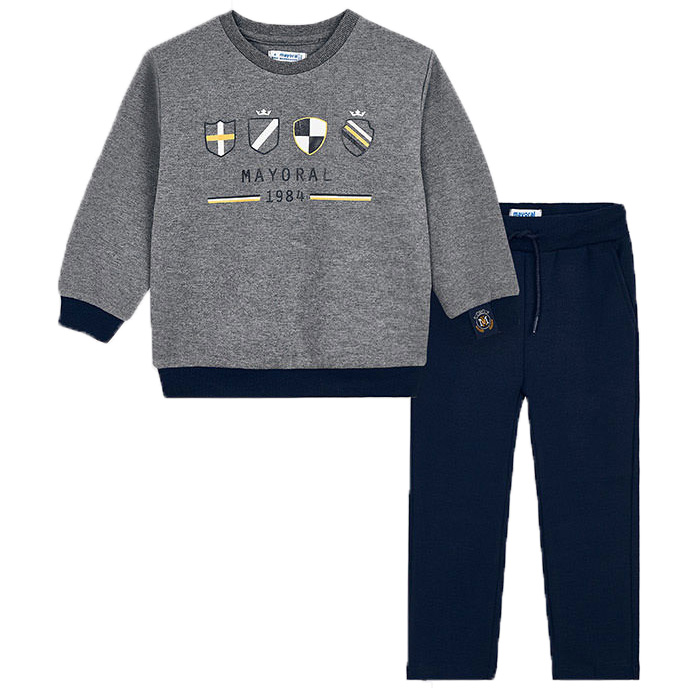Autumn Winter Mayoral baby boys 2 piece smart and comfy grey top navy pant set: