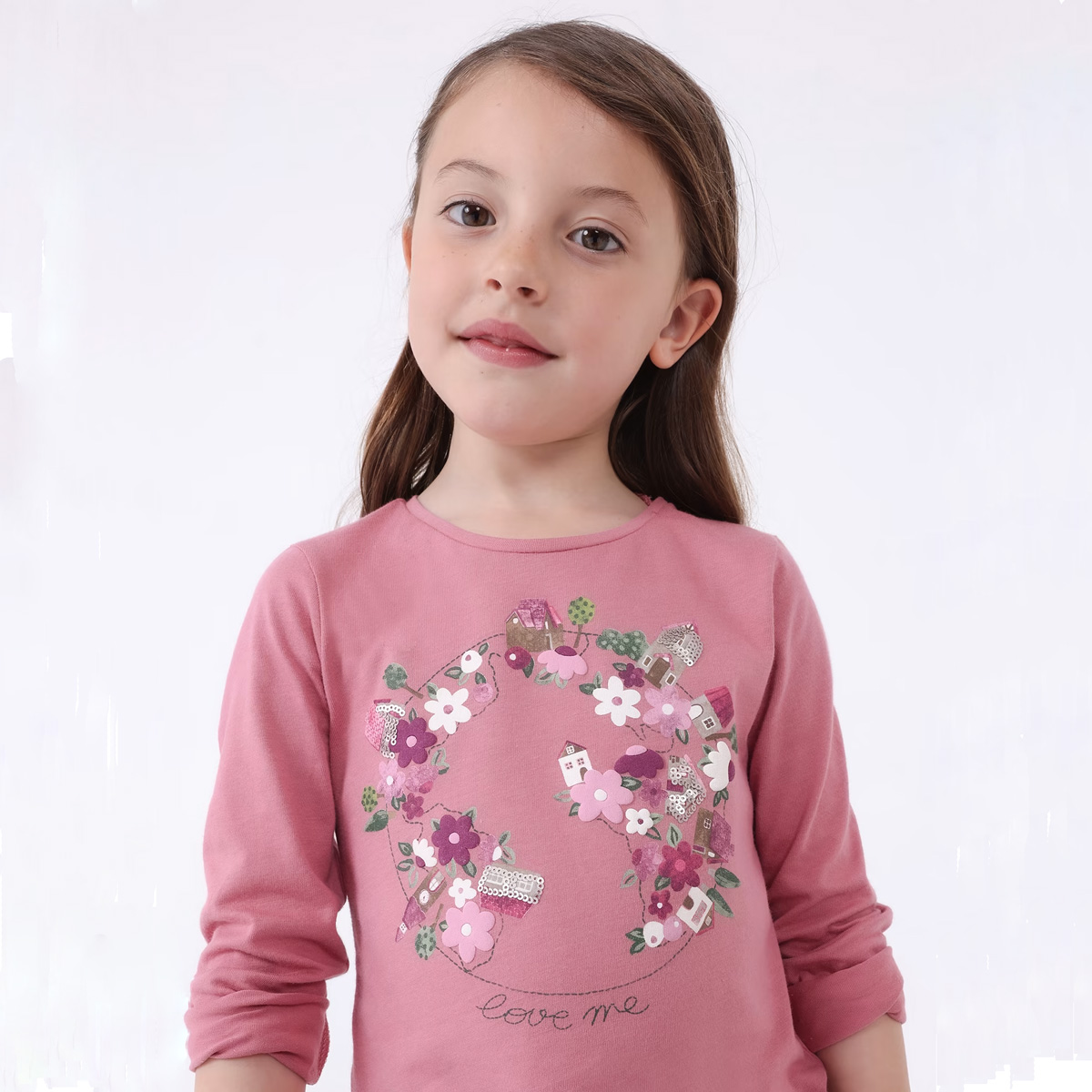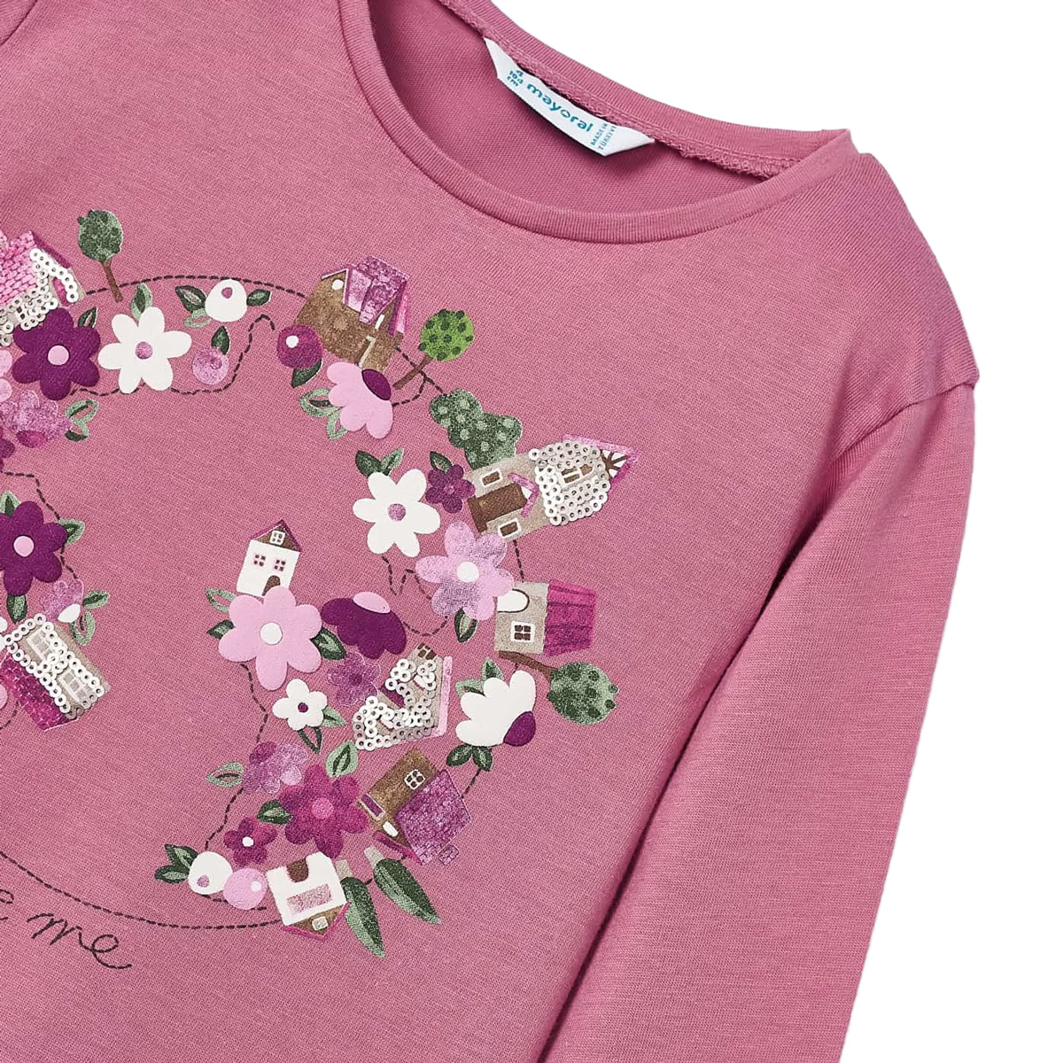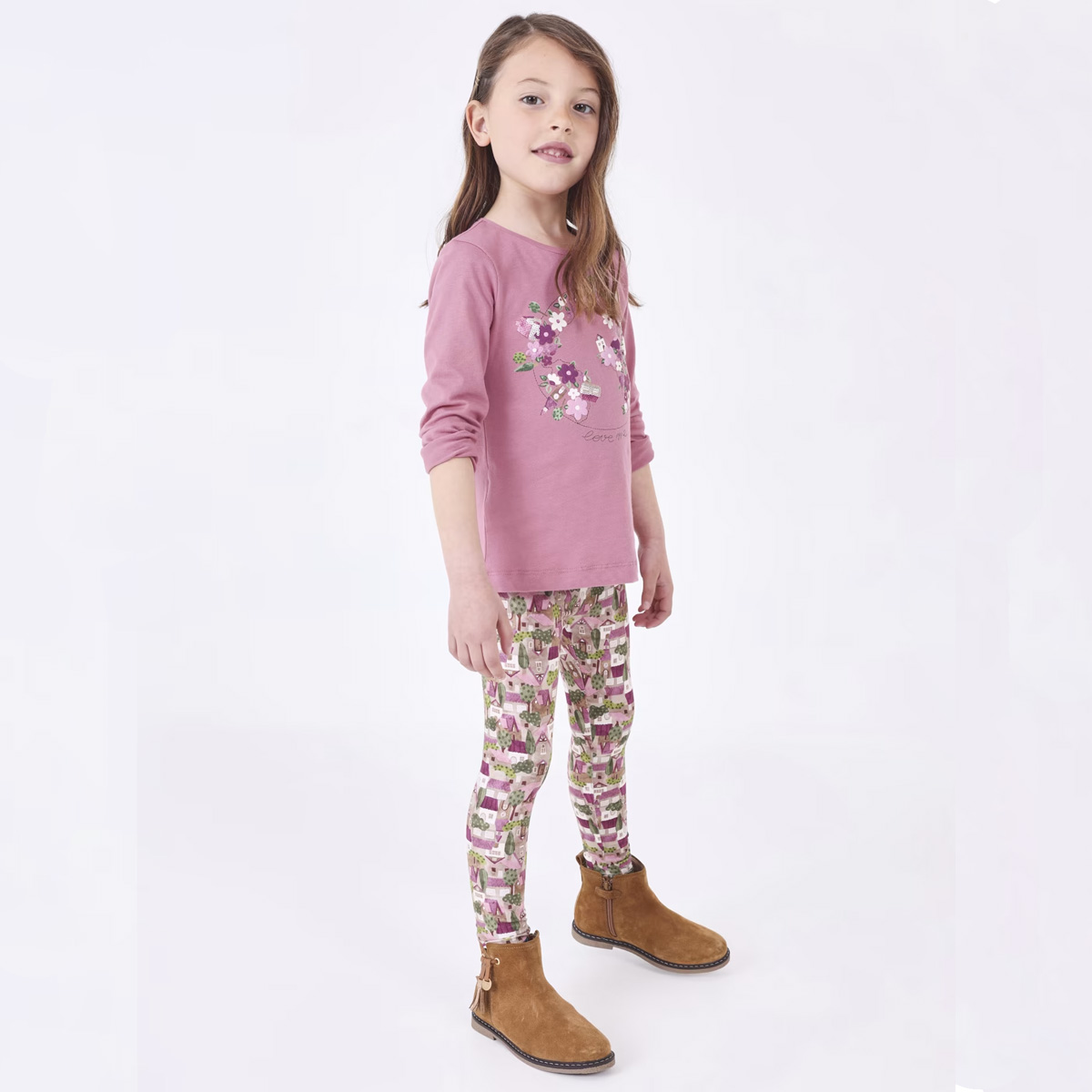 Mayoral Autumn Winter girls top long sleeved dusky pink top and floral leggings set: