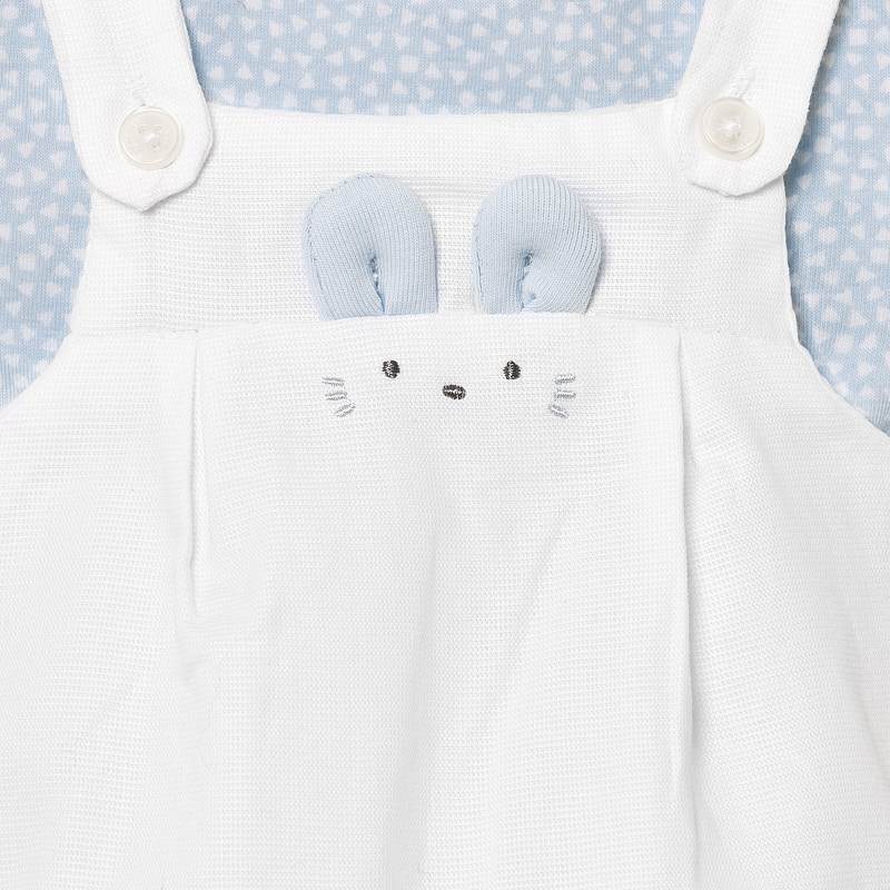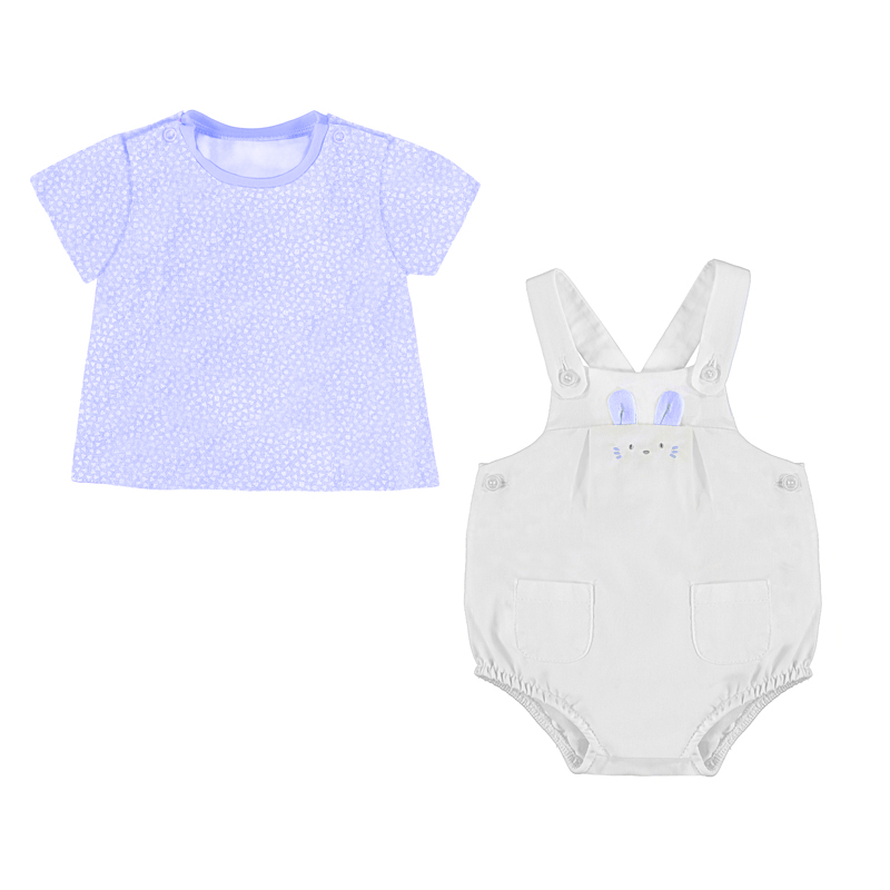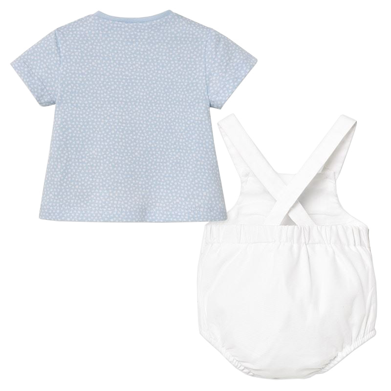 Mayoral Spring Summer baby boys two piece blue top and white dungarees shorts set: