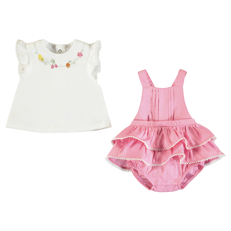 Mayoral Spring Summer Baby Girls White Top Pink Ruffle Braces Panties Dress Set