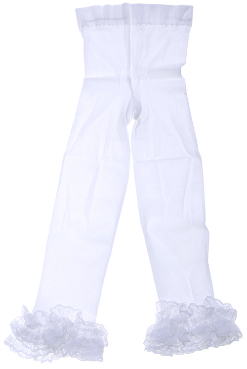 White footless frills tights for baby girls. Frills around the ankle. Made by PEX Kids. 95% nylon 5% spandex.