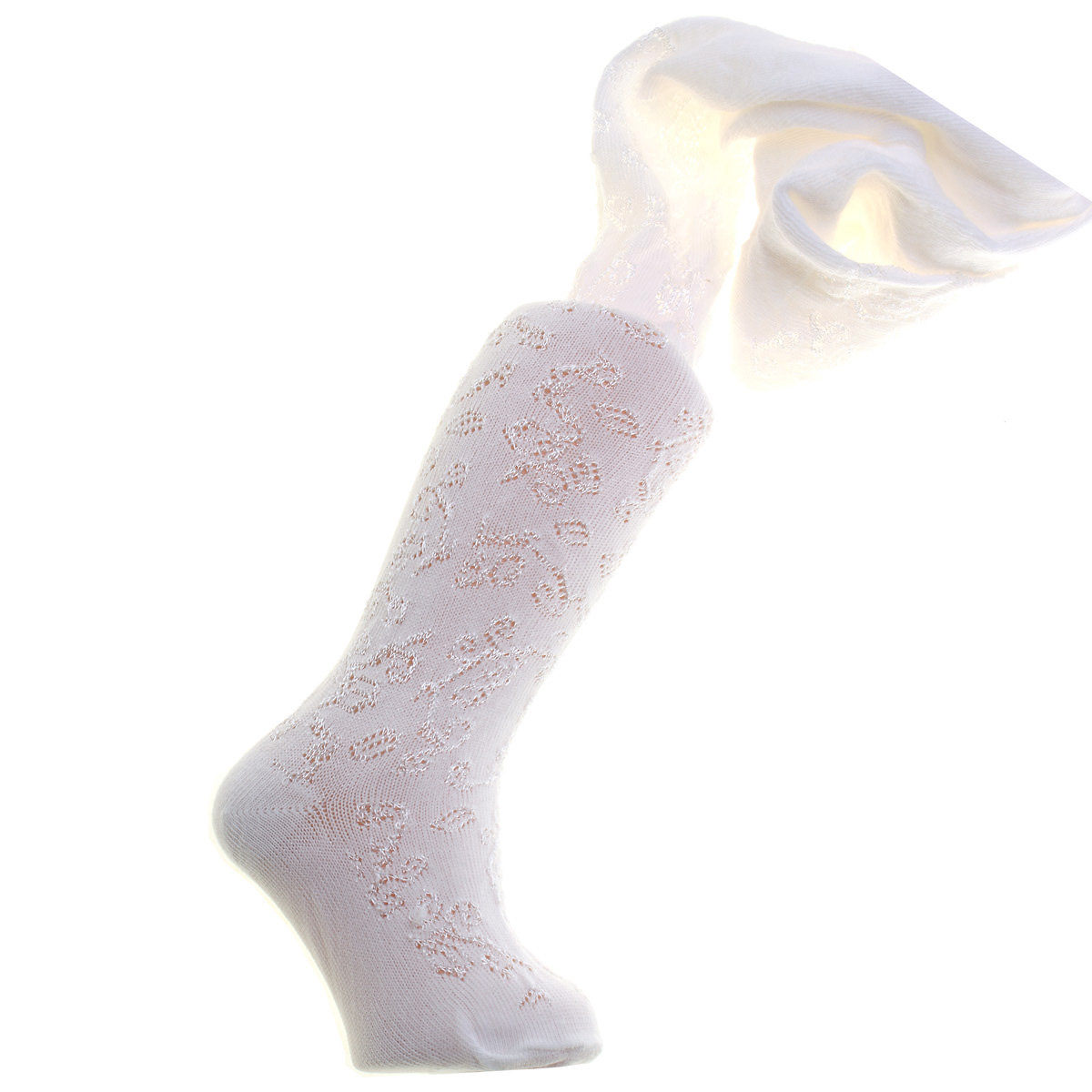 PEX white tights in floral pattern for baby girl. 52% nylon 47% cotton 1% elastane.