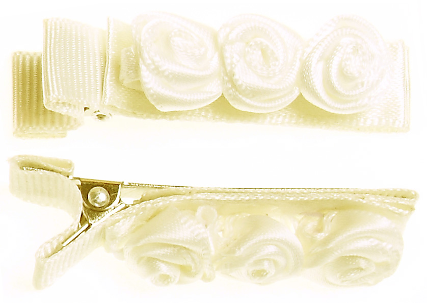 One pair of ivory 3 small rose buds hair clips.  Vey firm grip suitable for babies with fine or little hairs. Size approx 4.5cm length x 1cm width x 1cm height.