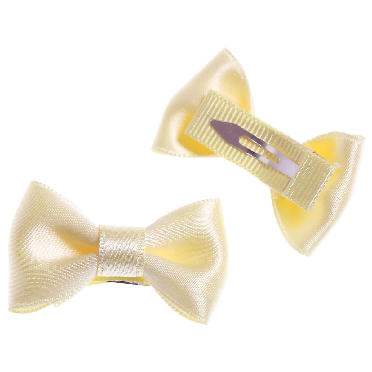 One pair of ivory hair bows with clips. Size 4cm length x 2.8cm width. Hand made in satin ribbon material. Very firm grip suitable for baby girls with little fine hairs. Hand made to the very best standard.