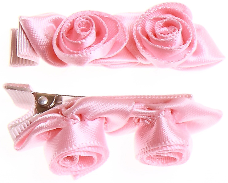 One pair of pink 2 rose buds hair clips. Vey firm grip suitable for babies with fine or little hairs. Size approx 5cm length x 1cm width x 1.5cm height.