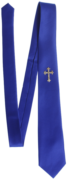 Boys royal blue tie with a glitter gold cross.  Tie is in satin fabric. Bright royal blue. Length 49"/125cm suitable from 5 years upto 16 years. For use as a holy communion tie.
