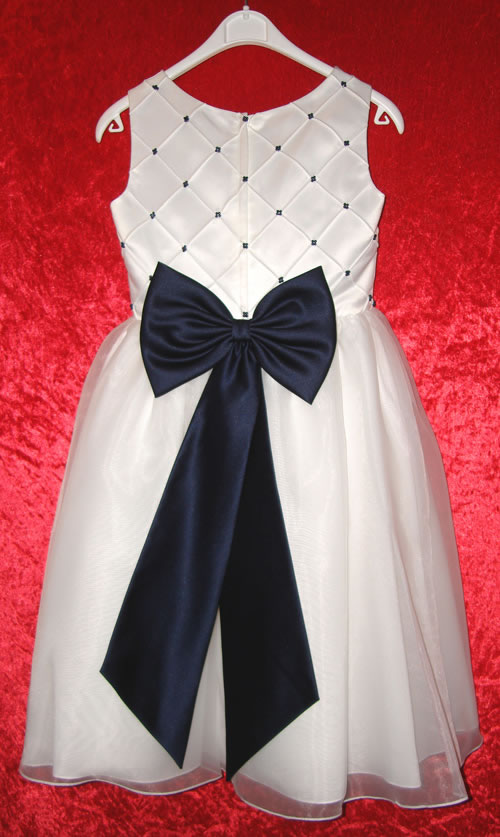 VERY BEAUTIFUL SARAH LOUISE BEAD BALLERINA DRESS. LITTLE NAVY BEADS ON DIAMOND PATTERNS ON TOP. MANIFICENT BOW AT THE BACK OF THE DRESS. FULLY LINED WITH PETTICOAT UNDERSKIRT. Colour IVORY.