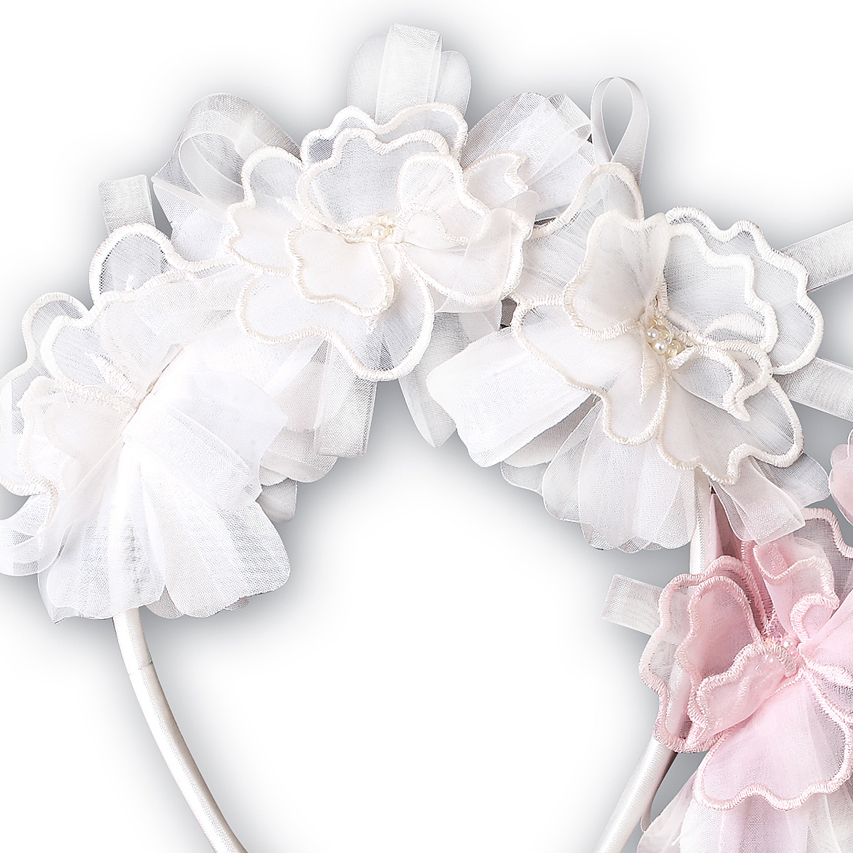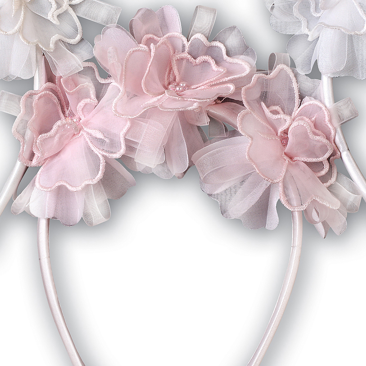 Sarah Louise Alice Band Decorated By Multiple Flowers In Pink And Ivory And White