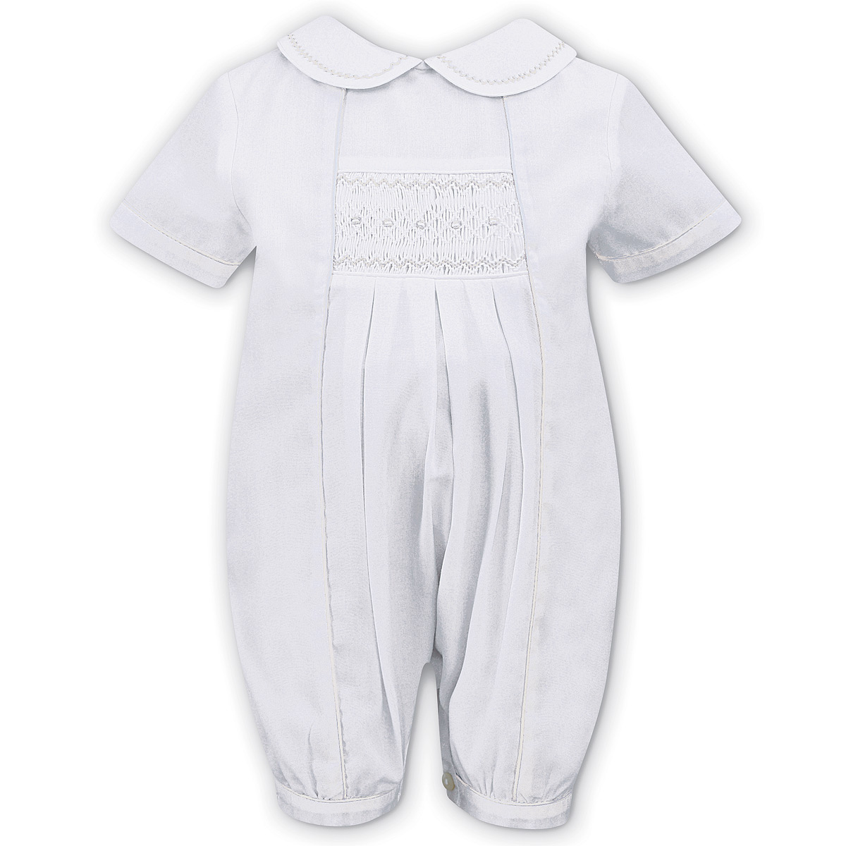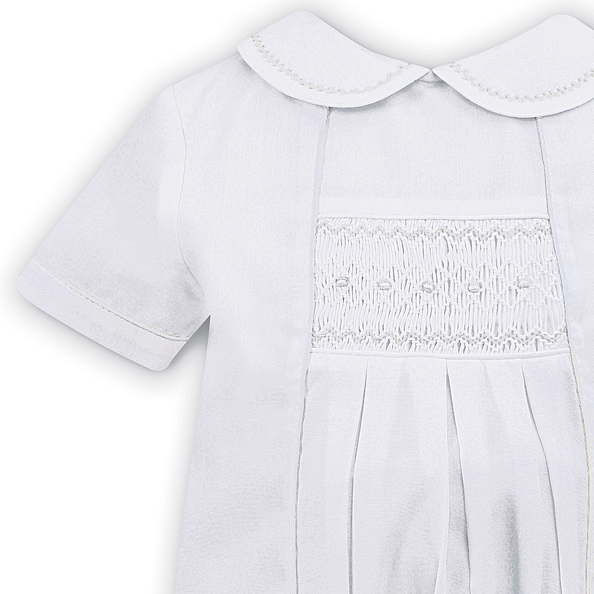 Sarah Louise Baby Boys White Smocked White Embroidered Romper