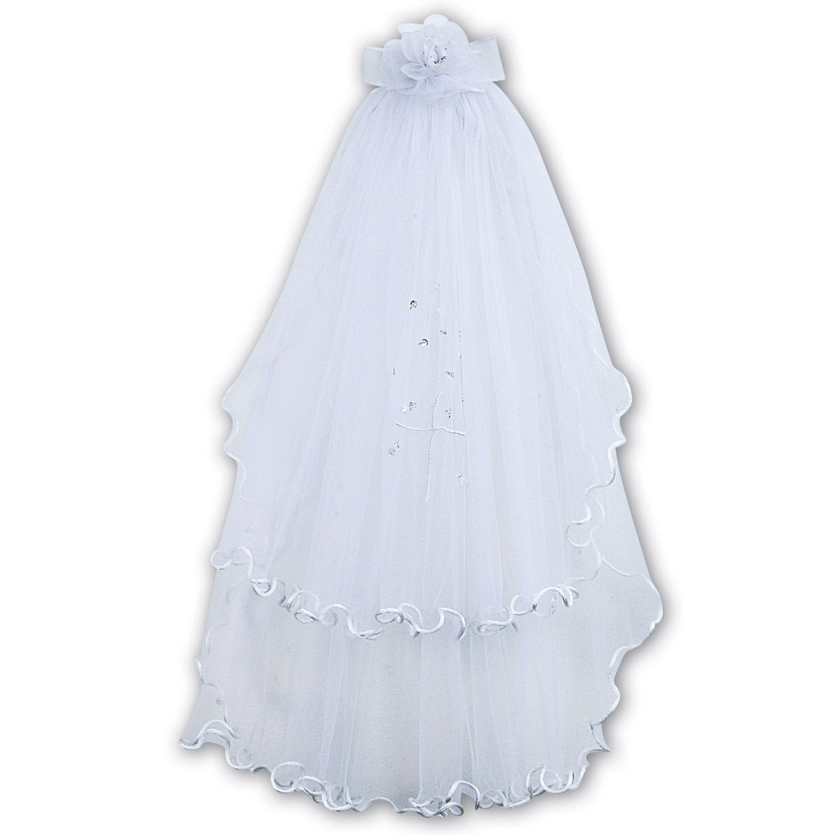 Sarah Louise Frilly Edge White First Holy Communion Veil With A Cross