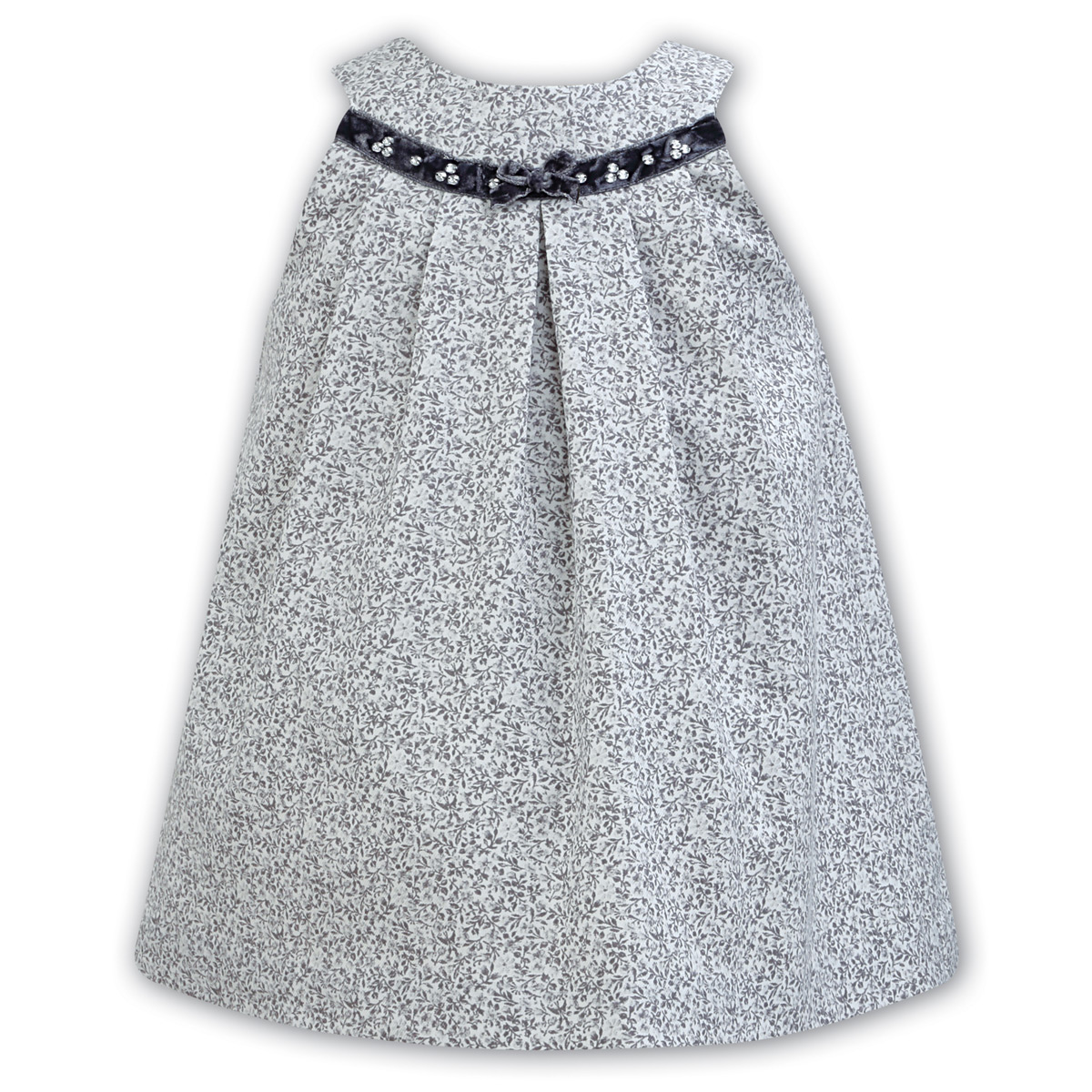 Simple but elegant sleeveless grey small floral print dress from Sarah Louise: