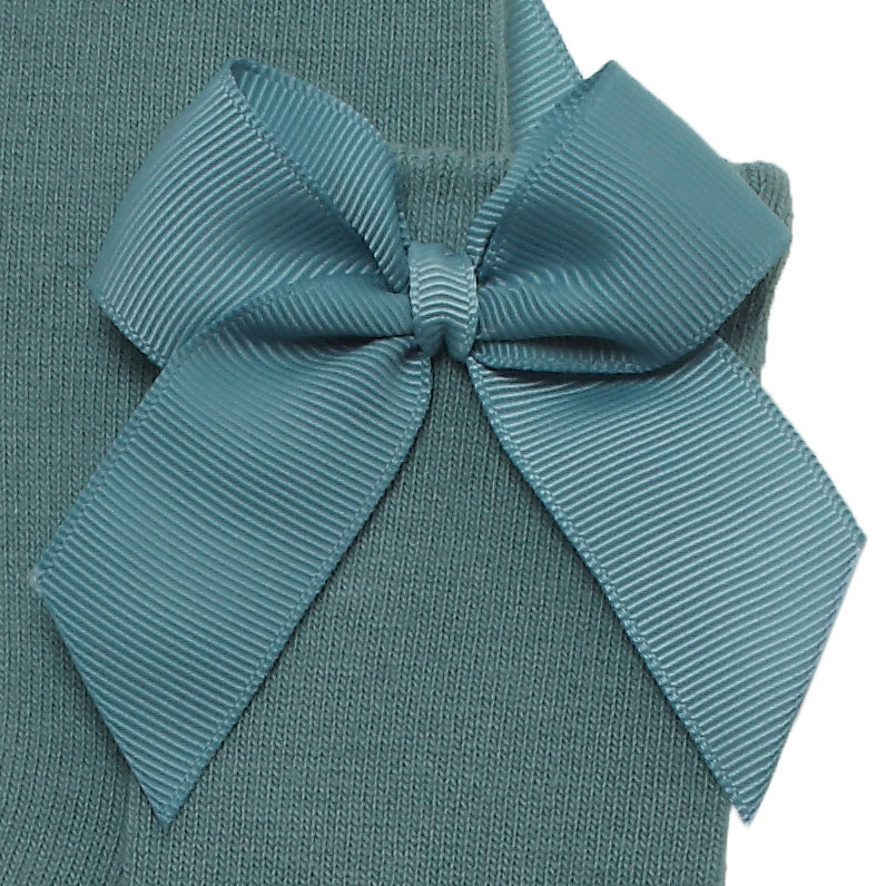 Sea Green Colour Girls Knee High Gros Grain Bow Socks #1Sea Green Colour Girls Knee High Gros Grain Bow Socks #2