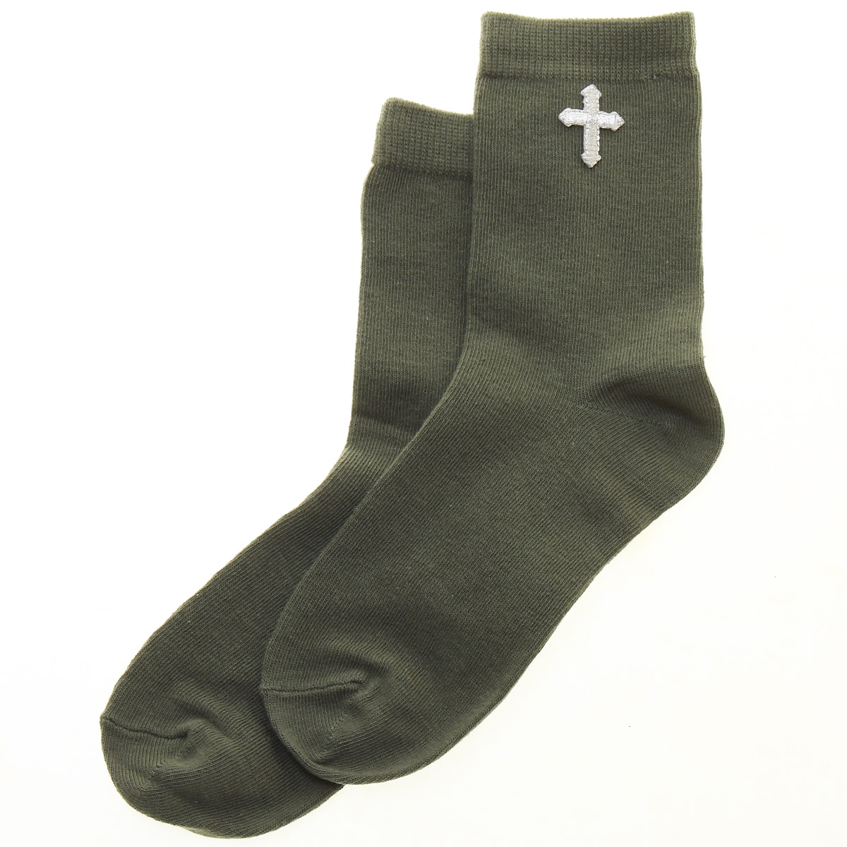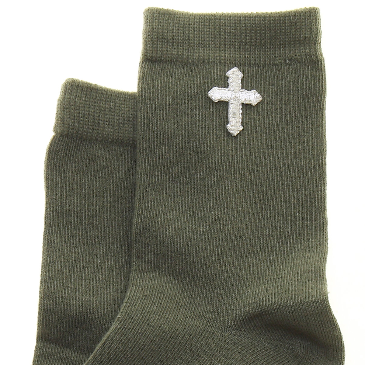 Silver cross in silver threads on green socks. Ideal finishing touch for his First Holy Communion.
