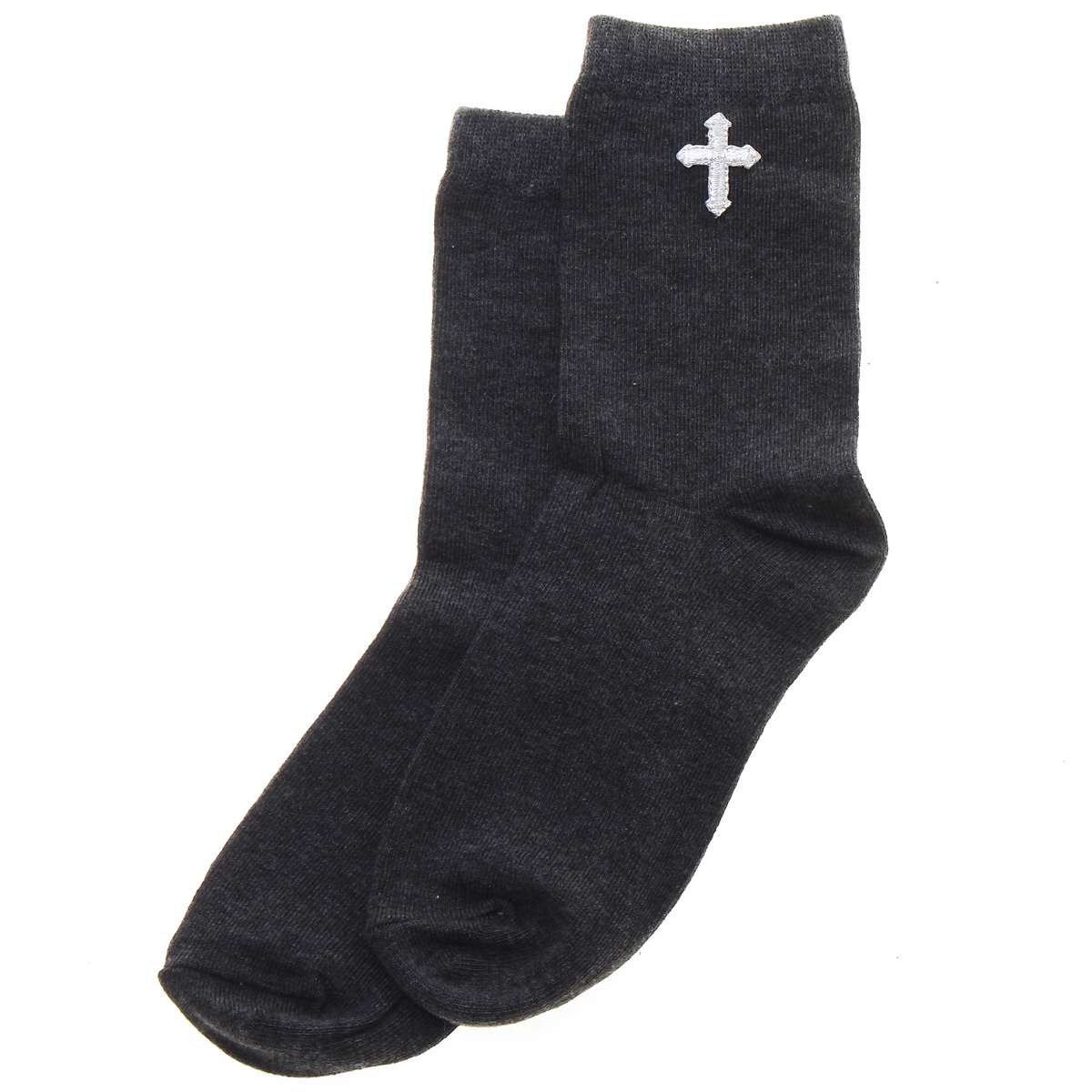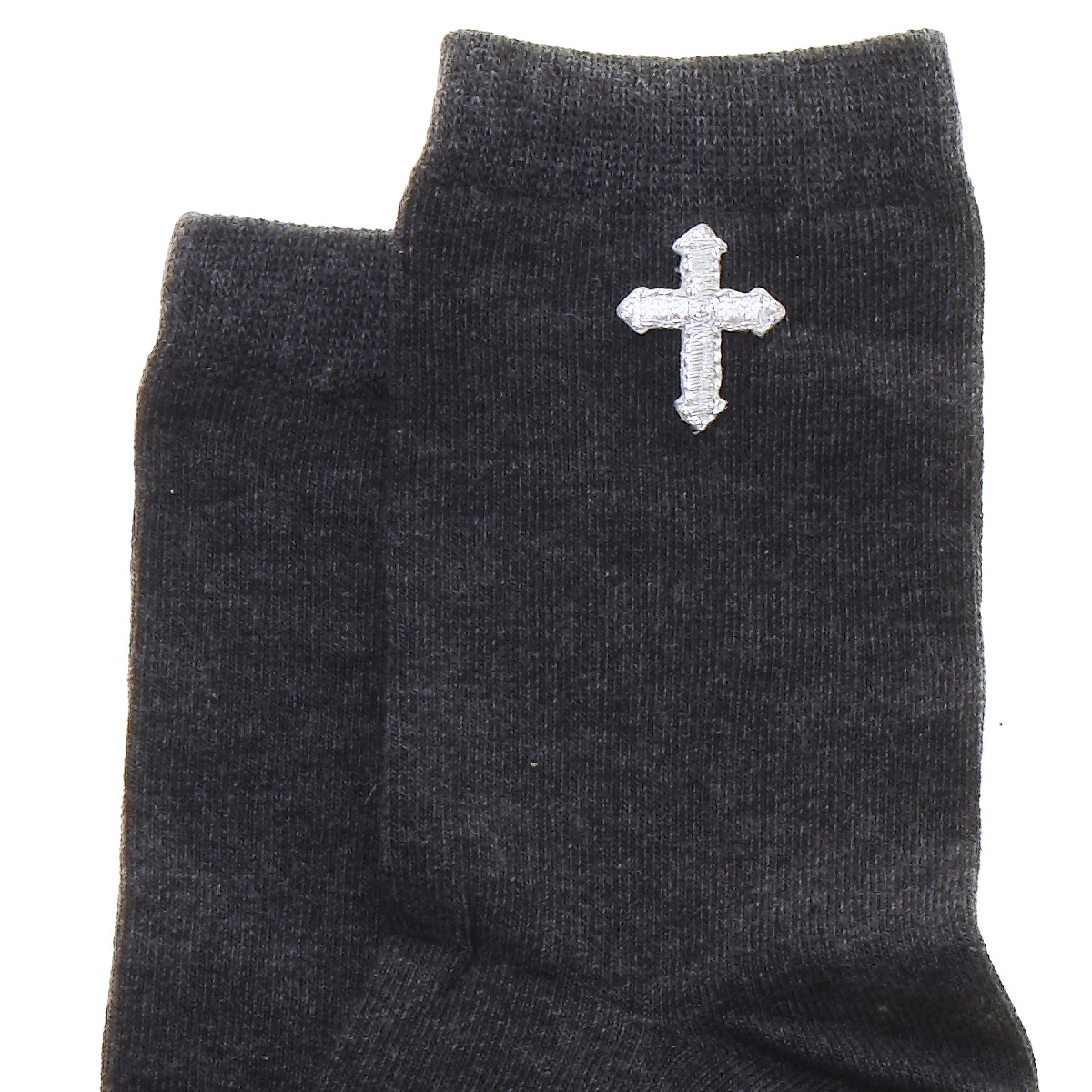 Silver cross in silver threads on grey socks. Ideal finishing touch for his First Holy Communion.