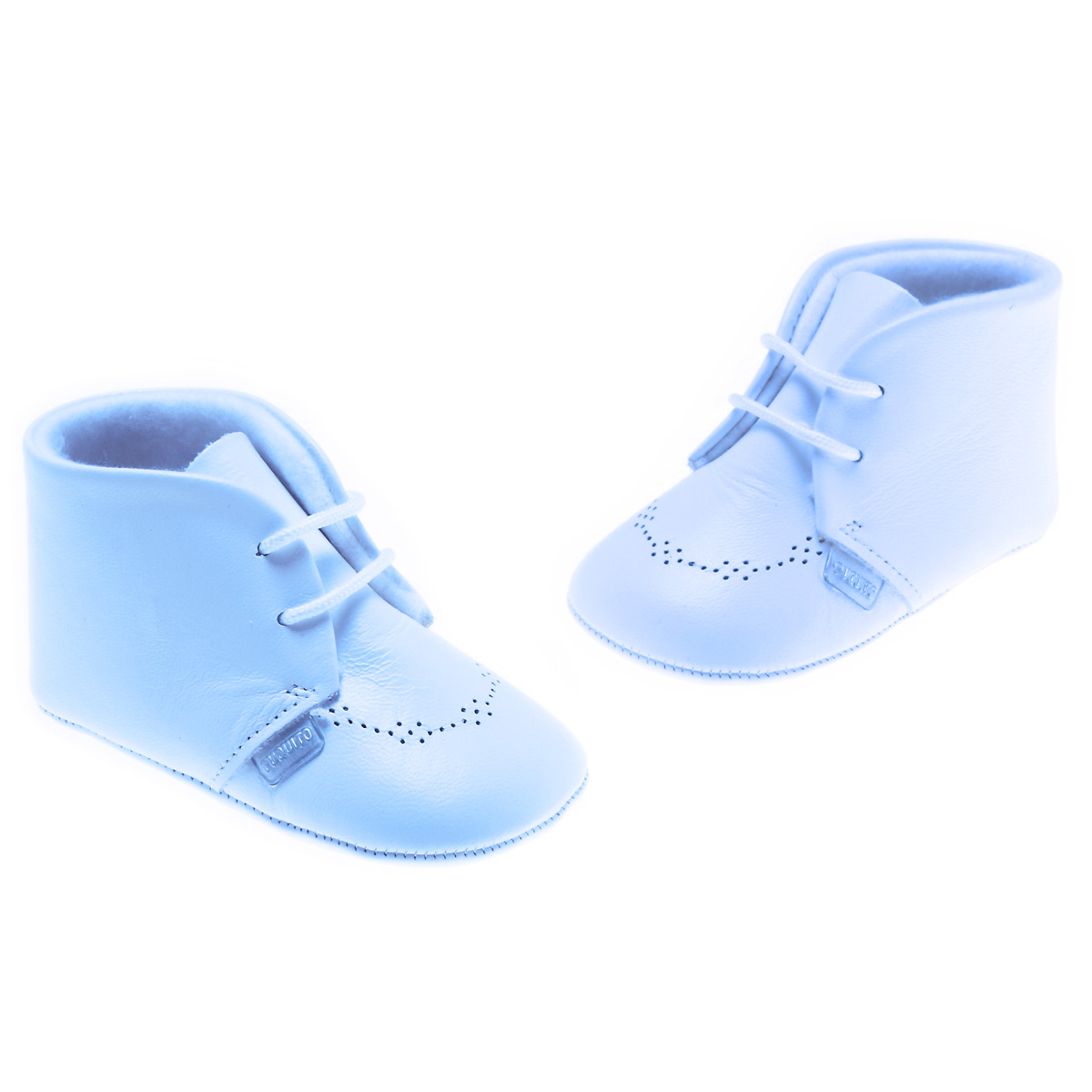 Baby boys baby blue shoes with lace up for christening and special occasions: