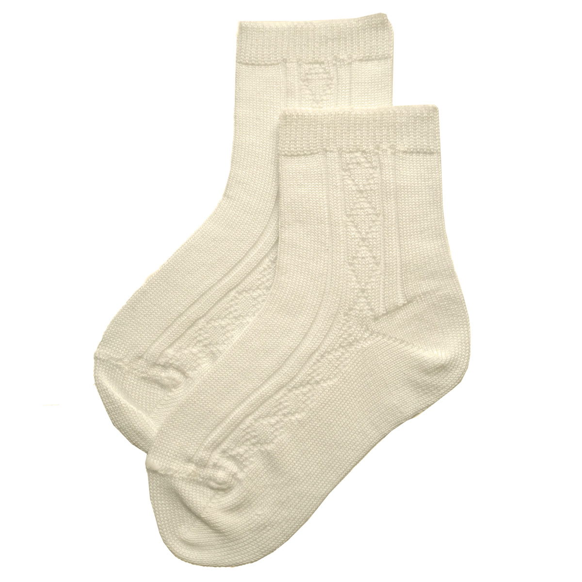 Ivory Ankle-High Boys' Socks with Diamond Pattern: