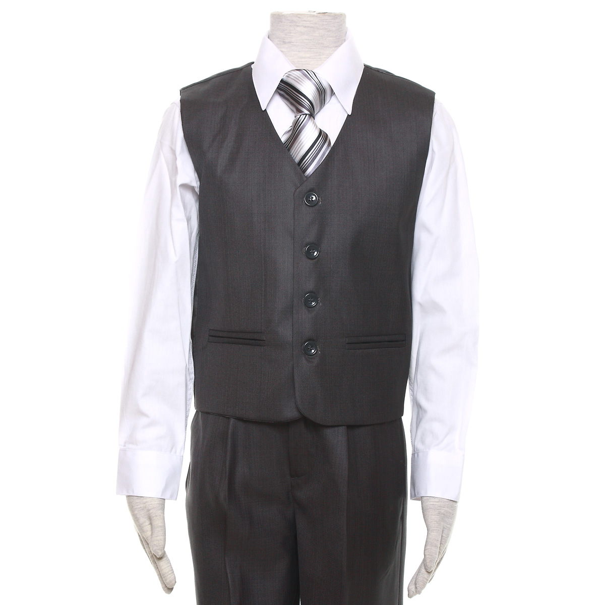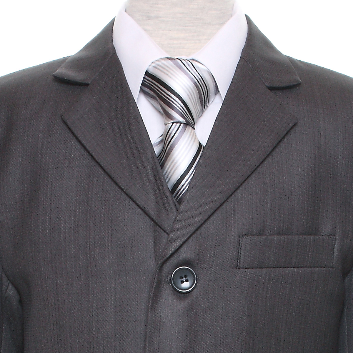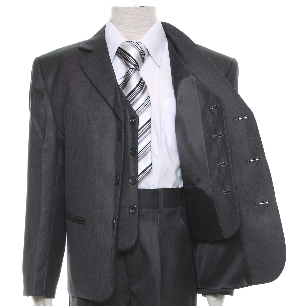 Lovely colour boys grey suit ideal for all formal occasions. Quality material and superb cut boy suit for use especially as pageboy suit and communion suit. The five piece set comprises: